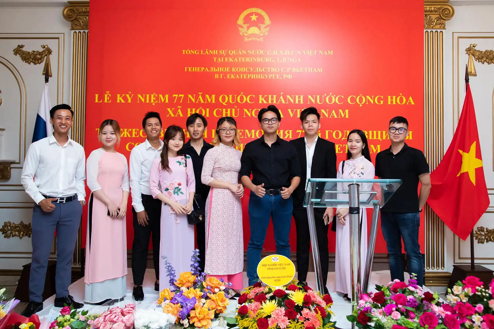 Ngày 30.08.2022, Tổng Lãnh sự quán Việt Nam tại Ekaterinburg đã long trọng tổ chức một buổi lễ kỷ niệm 77 năm Quốc khánh nước CHXHCN Việt Nam. Và đại diện Sinh viên Việt Nam tại TP vinh dự được tham dự buổi lễ trọng đại này.