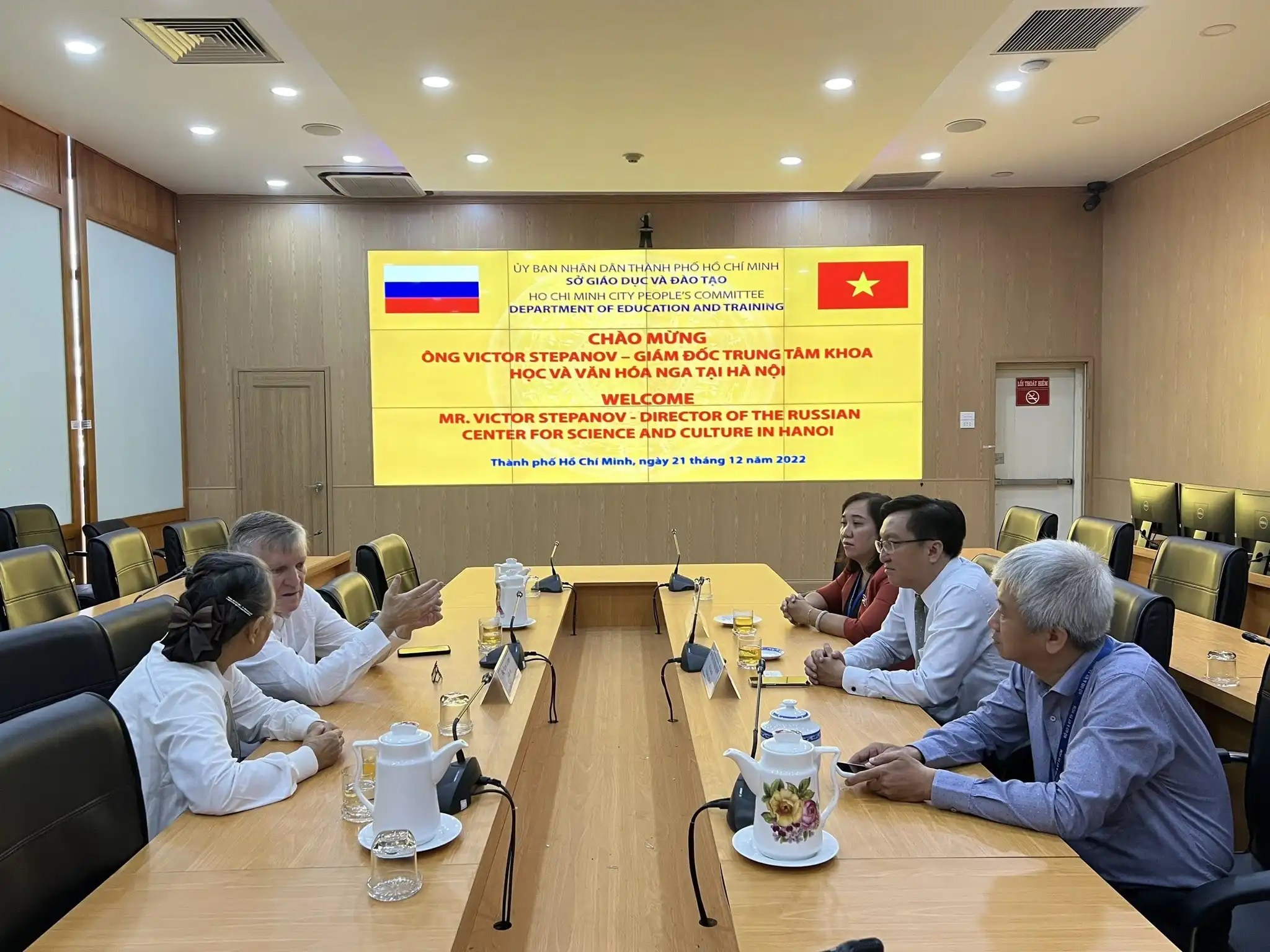 Vào ngày 21 tháng 12 năm 2022, tại TP Hồ Chí Minh, Giám đốc Trung tâm Khoa học và Văn hoá Nga tại Hà Nội Stepanov V.V. đã có buổi làm việc với Phó giám đốc Sở Giáo dục và Đào tạo TP Hồ Chí Minh Nguyễn Quốc Bảo. Trong buổi gặp mặt, hai bên đã trao đổi về các chương trình hợp tác và kế hoạch tổ chức các hoạt động chung trong thời gian tới. Sở Giáo dục và Đào tạo TP Hồ Chí Minh đánh giá cao nền giáo dục tại Nga nói chung và giáo dục đại học Nga nói riêng.