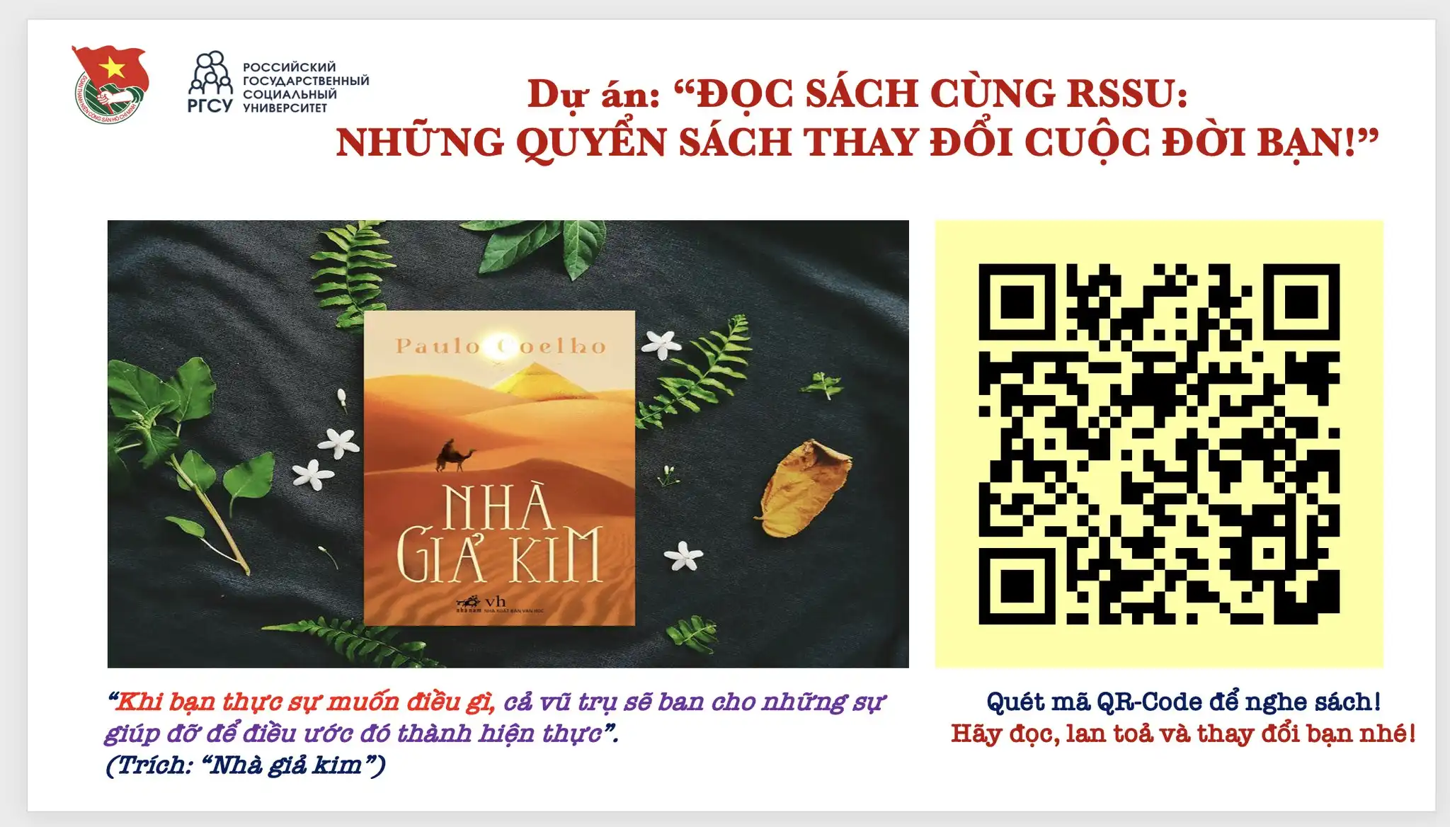 Với mong muốn hình thành, dần phát triển văn hoá đọc trong cộng đồng Đại học Tổng hợp Xã hội Quốc gia Nga và giới trẻ; qua đó, chia sẻ những thông điệp, bài học ý nghĩa, có sức lay động lớn, thậm chí thay đổi tích cực suy nghĩ, hành động và cuộc đời của chúng ta, vì những điều tốt đẹp hơn, BCH Chi đoàn Đại học Tổng hợp Xã hội Quốc gia Nga chính thức khởi động: