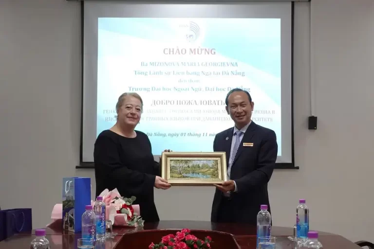 Trưởng khoa Chương trình Giáo dục Quốc tế ông Alexander Chernikov đã dẫn phái đoàn tham quan, tìm hiểu khuôn viên trường, cơ sở vật chất cùng với đó trao đổi các kế hoạch phát triển của trường đại học và cơ hội dành cho sinh viên quốc tế.