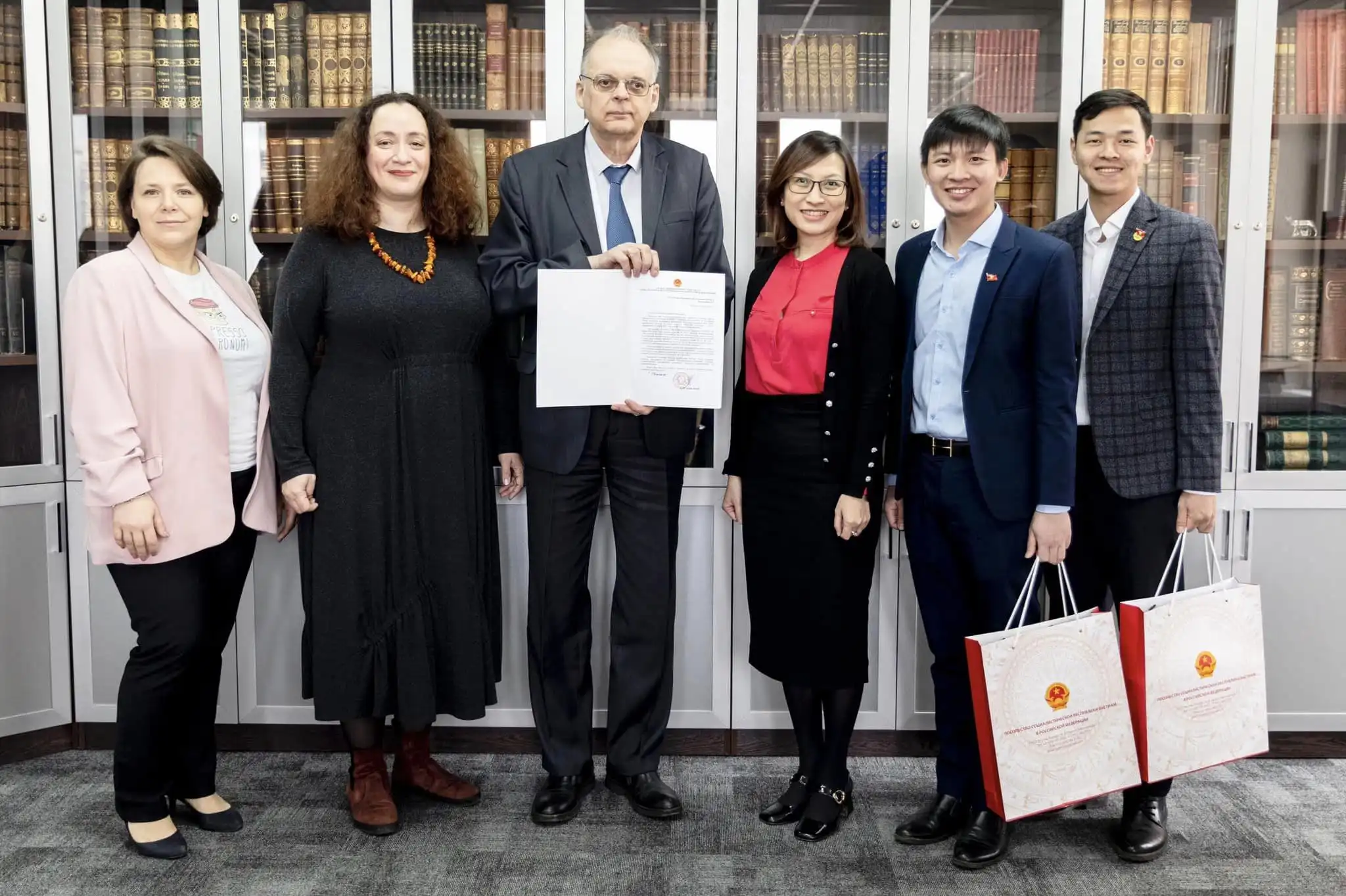 Đại sứ quán Việt Nam cũng tặng Thư viện Học viện tuyển tập các sáng tác của hai nhà văn Nga nổi tiếng – Chekhov và Sholokhov được dịch sang tiếng Việt để làm tài liệu giảng dayh cho các sinh viên đang học tập và nghiên cứu tiến Việt tại Học viện.
