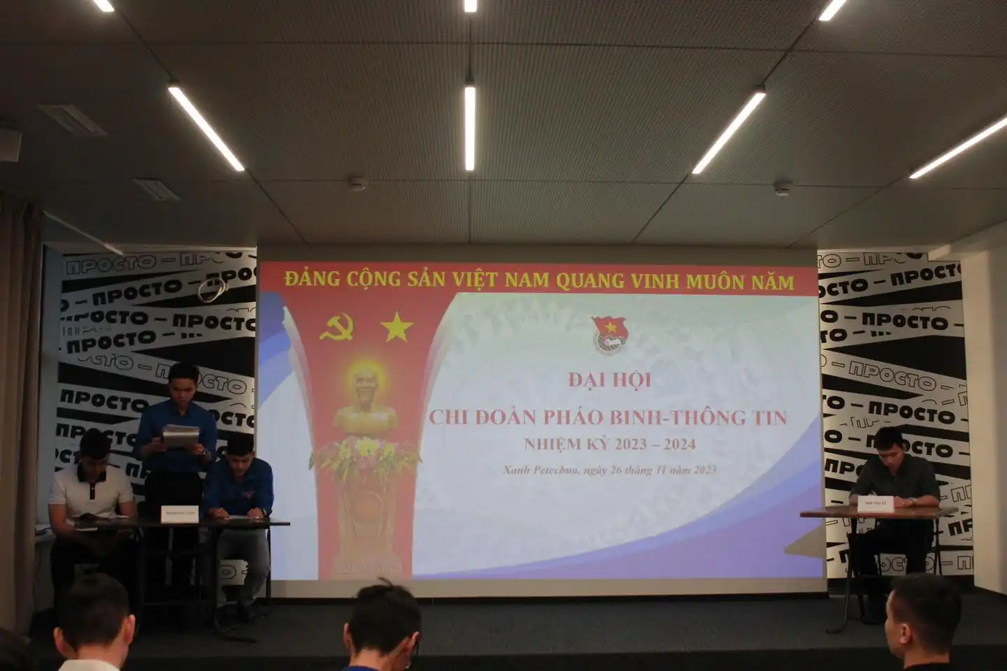 Được sự thống nhất của Chi uỷ Chi bộ Pháo binh – Thông tin và Đoàn Cơ sở Xanh Petecbua. Vào chiều ngày 26/11/2023 tại trung tâm dịch vụ Prosto đã diễn ra Đại hội Chi đoàn Pháo binh – Thông tin nhiệm kỳ 2023 – 2024 nhằm tổng kết, đánh giá hoạt động, công tác đoàn của Chi đoàn trong nhiệm kỳ 2022 – 2023 và bầu ra Ban Chấp hành mới có đủ uy tín, nhiệt huyết để lãnh đạo công tác, phong trào Đoàn của Chi đoàn trong nhiệm kỳ 2023 – 2024.