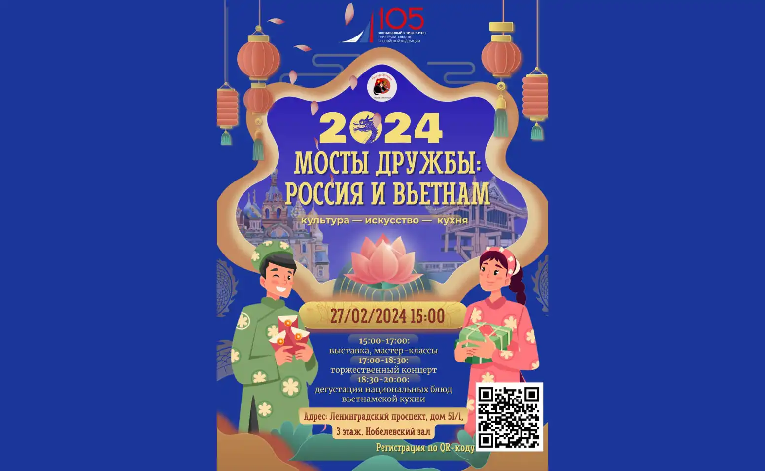 Hướng đến kỷ niệm 74 năm thiết lập quan hệ ngoại giao Việt Nam – Liên bang Nga, 30 năm ký Hiệp ước về những nguyên tắc cơ bản của quan hệ hữu nghị giữa Việt Nam – Liên bang Nga và 105 năm thành lập Đại học Tài chính trực thuộc Chính phủ Liên bang Nga, Du học sinh Việt Nam tại Đại học Tài chính giới thiệu sự kiện Nhịp cầu hữu nghị 2024. Rút kinh nghiệm từ những Sự kiện trước cũng như mong muốn đem đến những trải nghiệm tốt nhất tại sự kiện «Мосты Дружбы: Россия и Вьетнам» năm nay. Chuỗi sự kiện được kết nối theo chủ đề SAT: