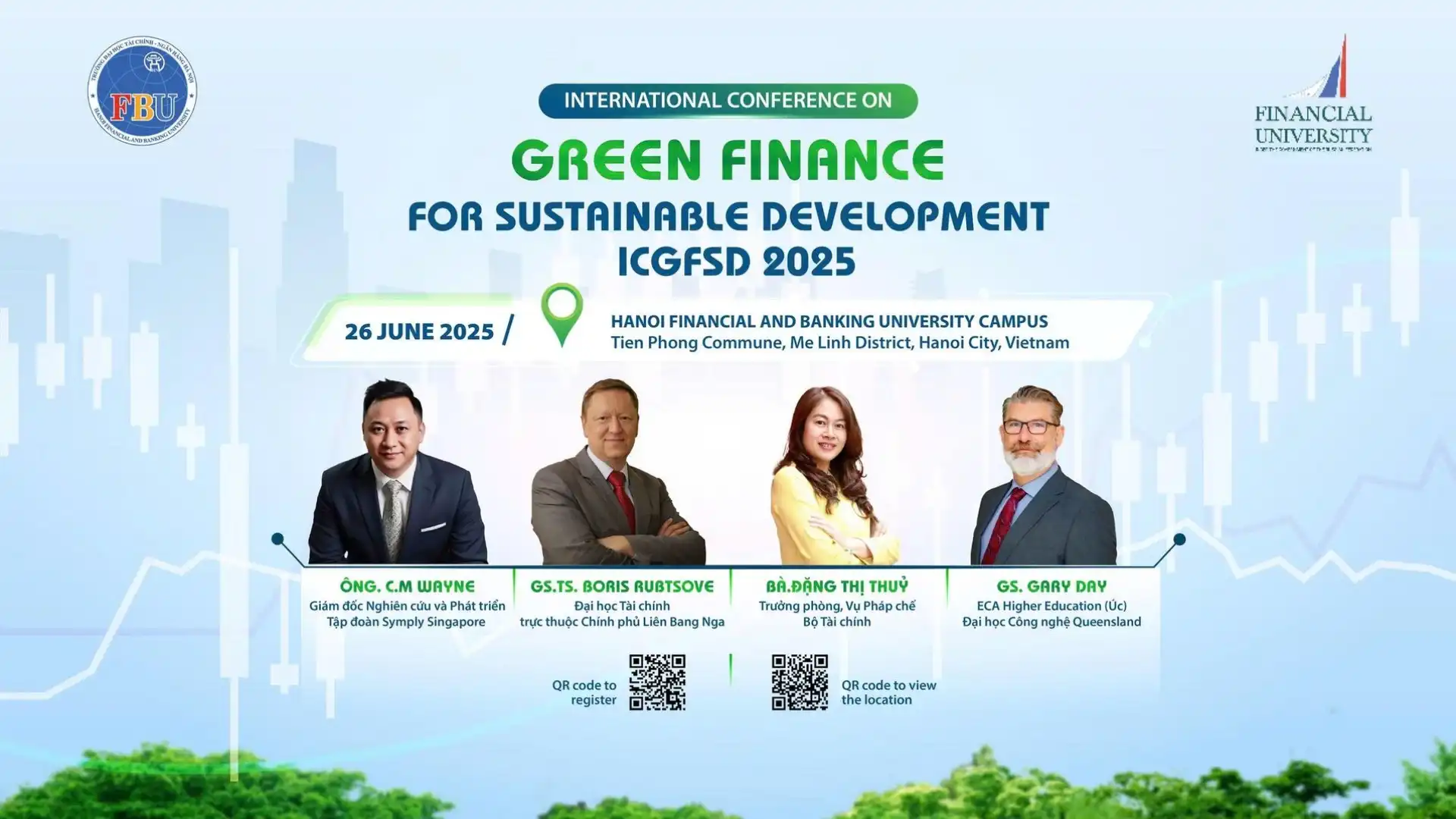 Hội thảo ICGFSD 2025 được tổ chức trong khuôn khổ thỏa thuận hợp tác giữa FBU và FinU, quy tụ sự tham dự của nhiều đại biểu quốc tế đến từ Đại sứ quán và Tham tán các nước như Nga, Lào, Indonesia, Sri Lanka, cùng đại diện các tập đoàn, doanh nghiệp đa quốc gia đến từ Singapore, Malaysia và Việt Nam.