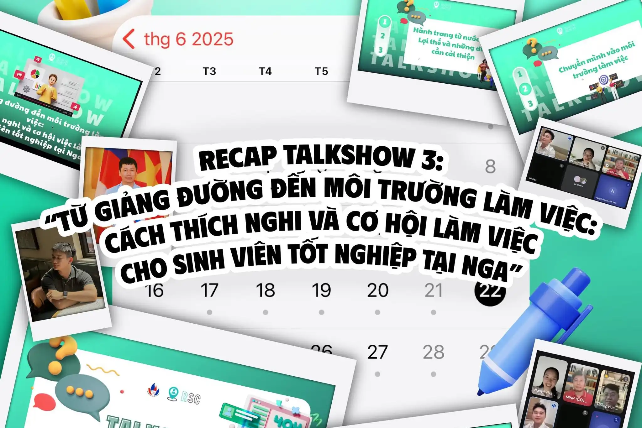 Với mong muốn hỗ trợ các bạn sinh viên Việt Nam tốt nghiệp tại Nga tìm được hướng đi phù hợp, CLB Học tập RUDN (RSC) đã tổ chức buổi Talkshow “Từ giảng đường đến môi trường làm việc: Cách thích nghi và cơ hội việc làm cho sinh viên tốt nghiệp tại Nga” vào chiều Chủ Nhật, ngày 22/6/2025. Sự kiện diễn ra trực tuyến qua nền tảng Microsoft Teams, thu hút sự quan tâm và tham gia đông đảo của sinh viên từ Trường Đại học Tổng hợp Hữu nghị các Dân tộc Nga (RUDN) và nhiều trường đại học khác tại Moskva.
