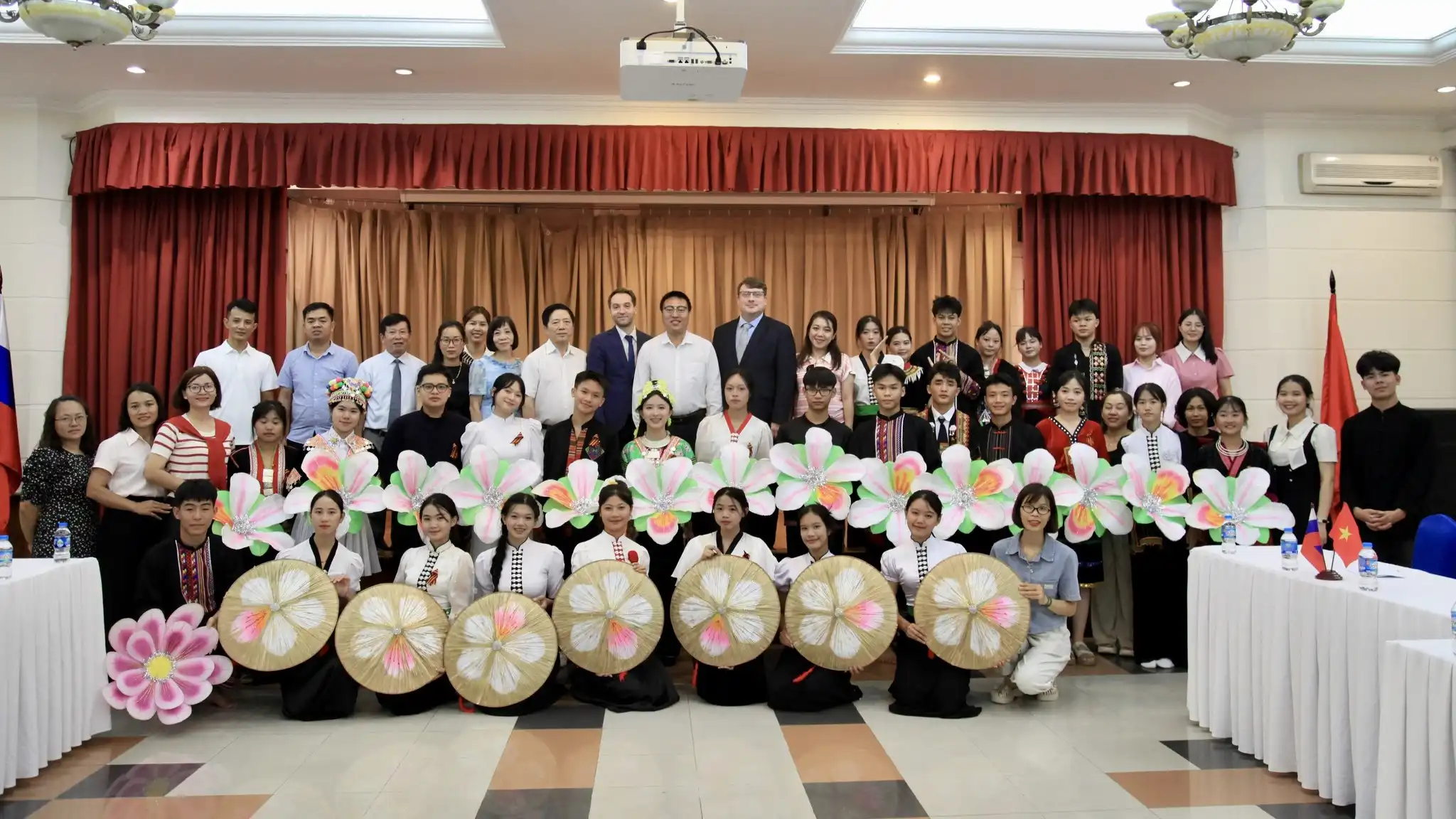 Đặc biệt, hoạt động nghệ thuật – yếu tố văn hóa cốt lõi – được chuẩn bị công phu. Các em luyện tập các tiết mục đặc trưng như múa xòe Thái, múa khèn Mông, hát múa tập thể… Trong hành trang ấy còn có cả những trò chơi dân gian như tung còn, nhảy sạp, kéo co, tù lu, ném pao – những sắc màu văn hóa đặc trưng của các dân tộc miền núi phía Bắc. Điều đáng quý là học sinh cũng được học thêm các tiết mục mang dấu ấn văn hóa Nga như hát dân ca, múa dân vũ và diễn kịch ngắn bằng tiếng Nga – như một lời chào trân trọng gửi đến nước bạn.