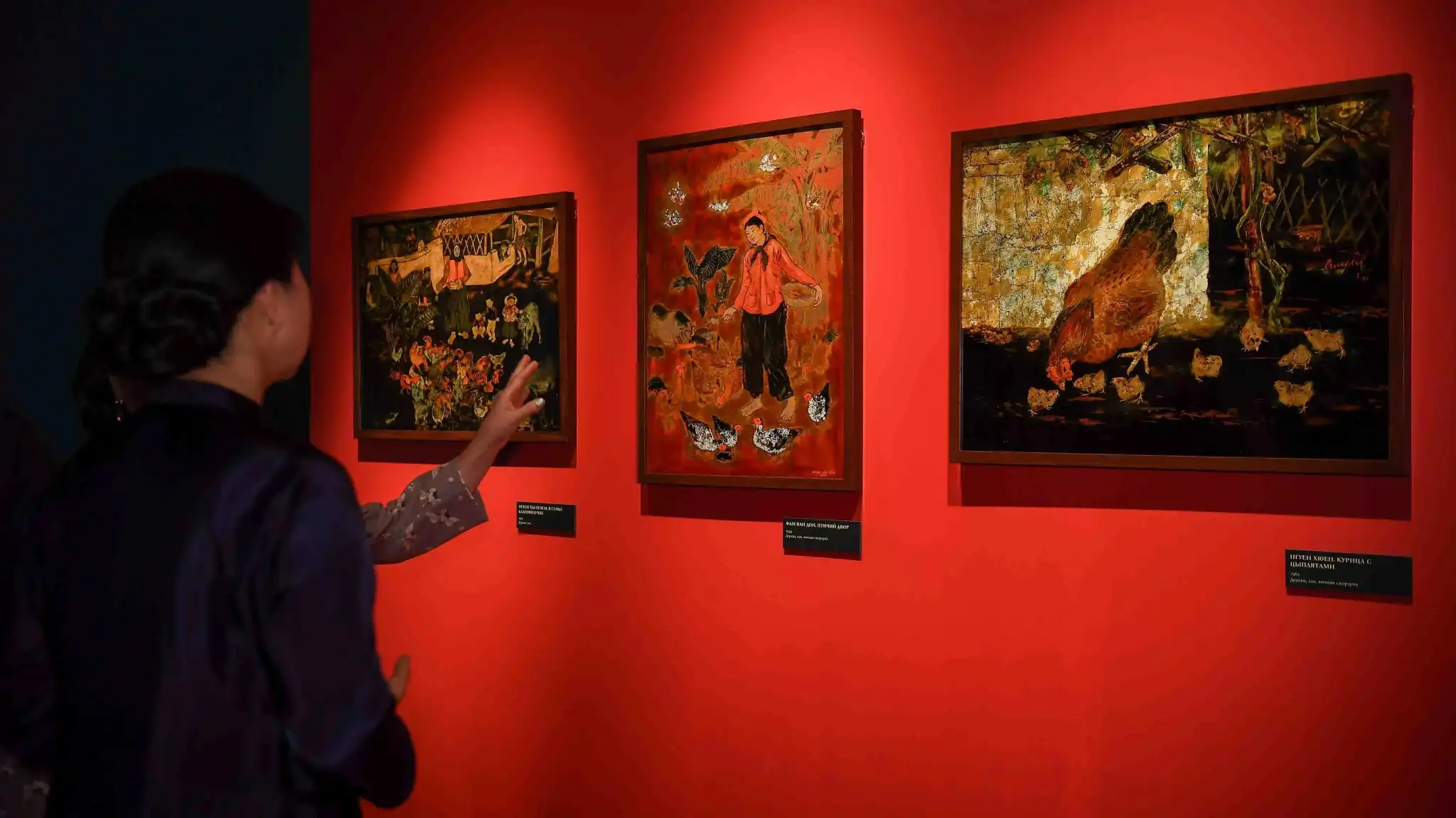Đại diện giám tuyển triển lãm, bà Albina Legostaeva, chia sẻ rằng nhiều tác phẩm được giới thiệu tại đây là của những nghệ sĩ từng học tại Trường Cao đẳng Mỹ thuật Đông Dương – cái nôi của nghệ thuật sơn mài hiện đại Việt Nam. Bà cho biết: “Nghệ thuật tranh sơn mài hiện đại của Việt Nam đã tiến xa, nhưng vẫn duy trì được những yếu tố truyền thống quý giá. Chúng tôi thực sự may mắn khi có được những tác phẩm vô giá ấy tại bảo tàng.”