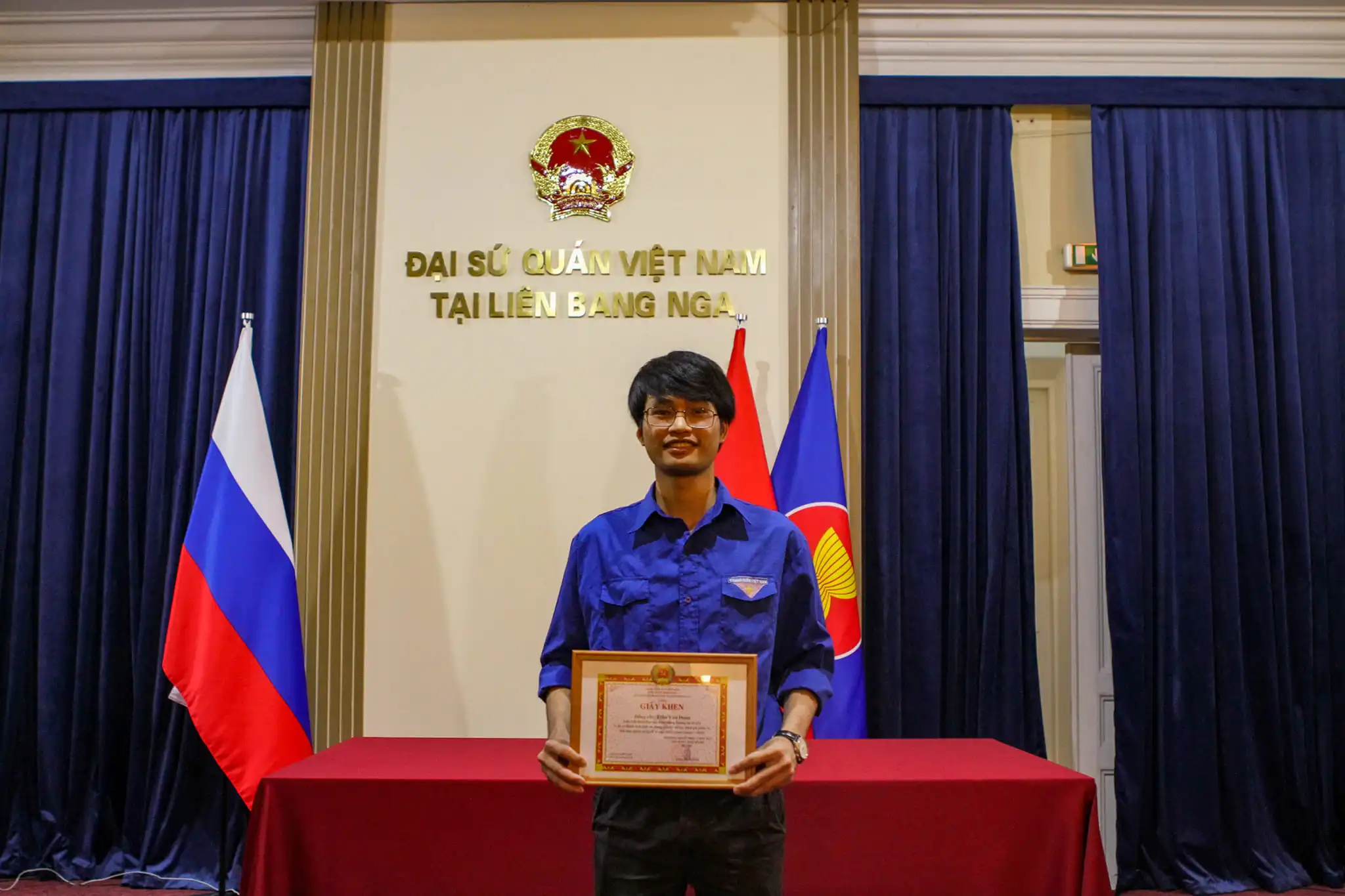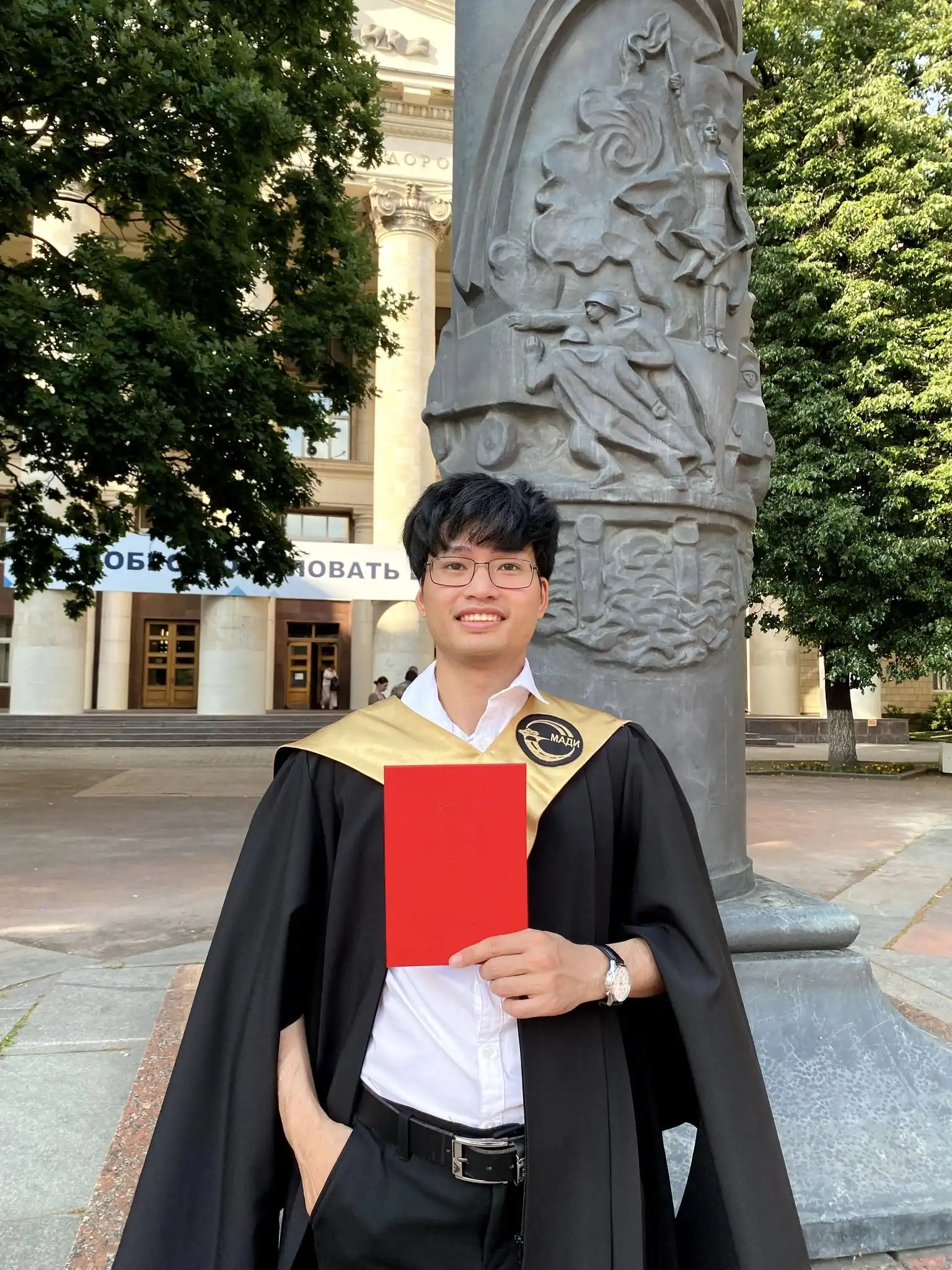 Là một hoạt động thường niên trong chuỗi các hoạt động kỷ niệm ngày thành lập trường Đại học Giao thông đường bộ Moscow, năm nay sau Lễ kỷ niệm 92 năm thành lập trường MADI, phía Đại diện nhà trường đã công bố và trao bằng khen cho những sinh viên đạt danh hiệu “Лучший студент”. Đây là danh hiệu rất danh giá mà mỗi sinh viên đang theo học tại trường đều mong muốn nhận được. Tiêu chí đánh giá được dựa trên những thành tích xuất sắc và nổi bật trong một năm của cá nhân sinh viên trên nhiều phương diện từ học tập, nghiên cứu, rèn luyện, thể dục thể thao, vv. Đơn vị Du học sinh Việt Nam tại MADI rất vui mừng thông báo, năm nay thạc sỹ năm 2 lớp 2мСМ ngành máy xây dựng Trần Văn Đoán là một trong những sinh viên đã xuất sắc vượt qua hàng nghìn sinh viên khác để được nhà trường vinh tên và trao tặng bằng khen. Đây là một niềm vinh dự và tự hào với cá nhân thạc sỹ Trần Văn Đoán nói riêng cũng như là với Đơn vị Du học sinh Việt Nam tại MADI nói chung. Chúc mừng thạc sỹ Trần Văn Đoán, chúc bạn trong thời gian sắp tới sẽ nỗ lực và đạt được nhiều thành công hơn nữa. Chúc mừng Tập thể Đơn vị Du học sinh Việt Nam tại MADI khi đã có một Du học sinh xuất sắc trong tập thể của đơn vị. Hy vọng rằng, trong các năm tiếp theo sẽ còn có nhiều hơn nữa các Du học sinh Việt Nam tại MADI xuất sắc giành được những danh hiệu danh giá như thế này từ nhà trường để nối tiếp truyền thống vẻ vang của các thế hệ đàn anh đi trước.